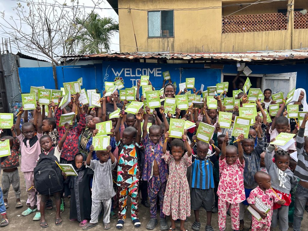 Recently, OneAfricanChild organized a special event at Isrina Schools in Ajegunle, Lagos, as part of the ongoing Project 10,000 initiative. The atmosphere buzzed with excitement as 120 students gathered on the assembly ground, warmly welcoming the familiar faces of the volunteers. During the event, 528 key learning materials—including books, pens, pencils, sharpeners, and erasers—were distributed to students from nursery to Basic 5. In addition, the teachers were gifted writing materials to support their efforts in nurturing the minds of their students. For the children, the sight of brand-new supplies was a source of immense joy, and it reinforced their desire to come to school each day prepared to learn and grow.